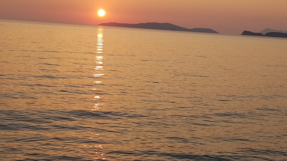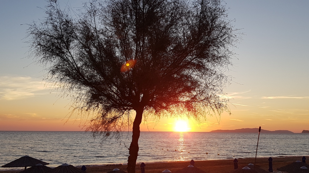 Arillas ist nicht nur ein malerischer Künstenort mit breitem Sandstrand, sondern hat sich in den letzten Jahrzehnten zu einem der größten spirituellen Treffpunkte weltweit entwickelt. Viele bekannte Seminarzentren und Festivals ziehen jedes Jahr Tausende von Besuchern an. Dazu gehört auch der Ouranos Club, ein Seminarzentrum mit mehreren Seminarräumen in einem alten Olivenhain in unmittelbarer Nähe zum Meer. Wir sind im Thalassa-Raum, ein etwas erhöht liegender Seminarraum mit direktem Blick auf das Meer.